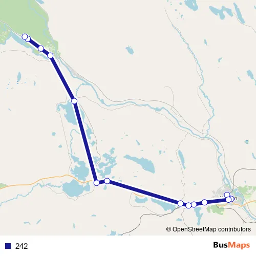 The first stop of the 242 bus route is Älvsbyn station and the last stop is Bredsel 63. 242 is operational during on weekdays.