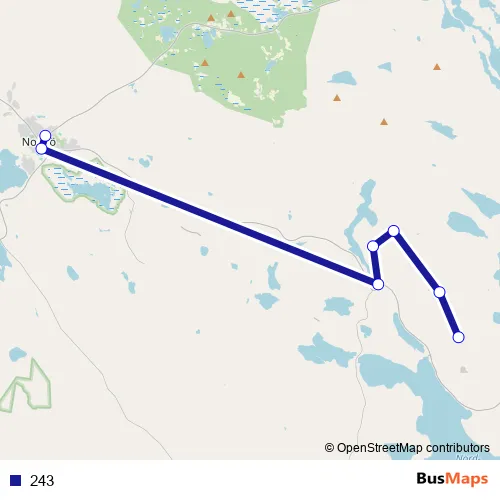 The first stop of the 243 bus route is Norsjö busstation and the last stop is Tjärnliden S. 243 is operational during on weekdays.