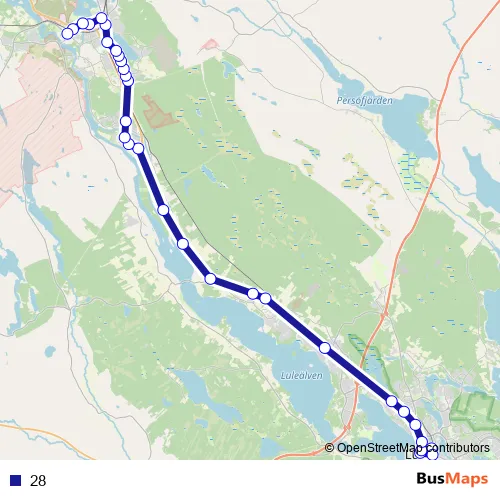The first stop of the 28 bus route is Luleå busstation and the last stop is Boden Garnis. 28 is operational during on weekdays.