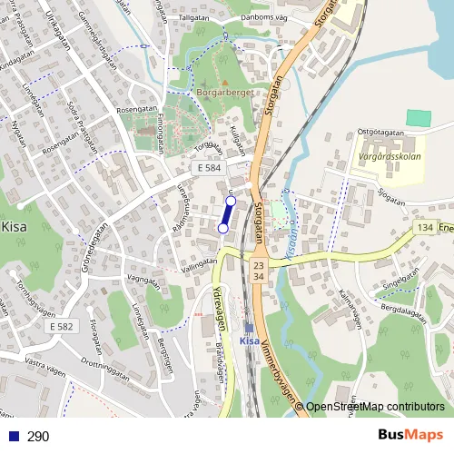 The first stop of the 290 bus route is Biblioteket Kisa and the last stop is Kisa torget. 290 is operational during everyday.