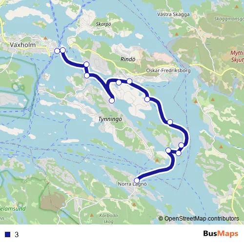 The first stop of the 3 ferry route is Norra Lagnö and the last stop is Vaxholm. 3 is operational during everyday.