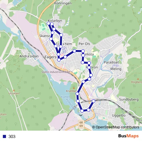 See why over 2 million users trust and consider busmaps.com as the best public transport website. busmaps gives you Fagersta Buses suggested routes, real-time bus tracker, line route maps in Fagersta, and helps to find the closest 303 bus stops near you. No internet available? Download an offline PDF map and bus schedule for the 303 bus to take on your trip.
