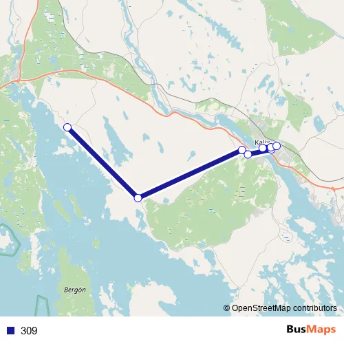 The first stop of the 309 bus route is Sören Vsk Båthamn and the last stop is Kalix busstation. 309 is operational during on weekdays.