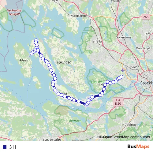 The first stop of the 311 bus route is Sluts hage and the last stop is Brommaplan T-bana. 311 is operational during everyday.
