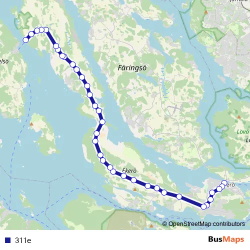 The first stop of the 311e bus route is Ekerö Tappström and the last stop is Sjöängen Munsö. 311e is operational during on weekdays.