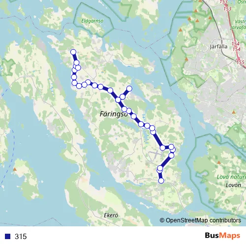 The first stop of the 315 bus route is Söderberga Svanhagen and the last stop is Jäsängen. 315 is operational during everyday.