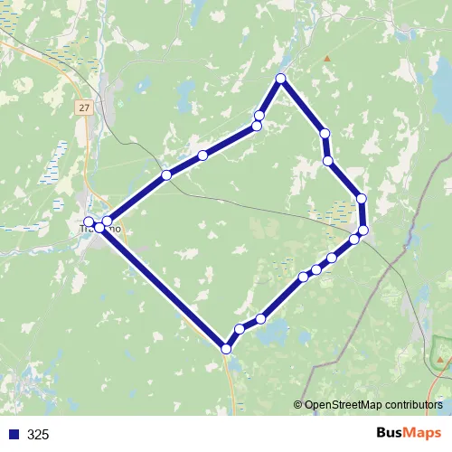 The first stop of the 325 bus route is Tranemo Tranängsskolan and the last stop is Tranemo busstation. 325 is operational during on weekdays.