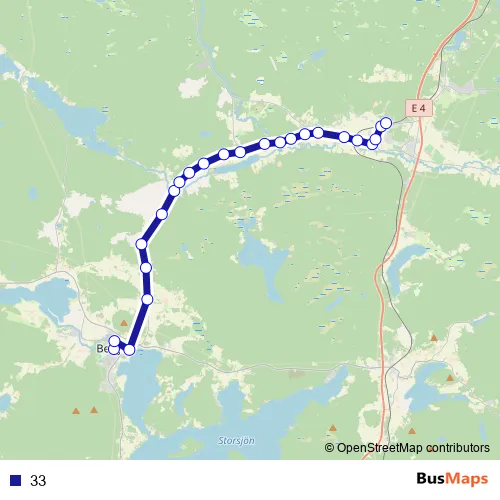 The first stop of the 33 bus route is Bergsjö busstation and the last stop is Gnarp station. 33 is operational during everyday.