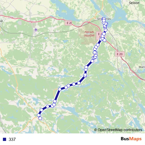 The first stop of the 337 bus route is Malmköping busstation and the last stop is Strängnäs station. 337 is operational during everyday.