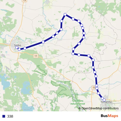 The first stop of the 338 bus route is Sjöbo busstation and the last stop is Tomelilla station. 338 is operational during everyday.