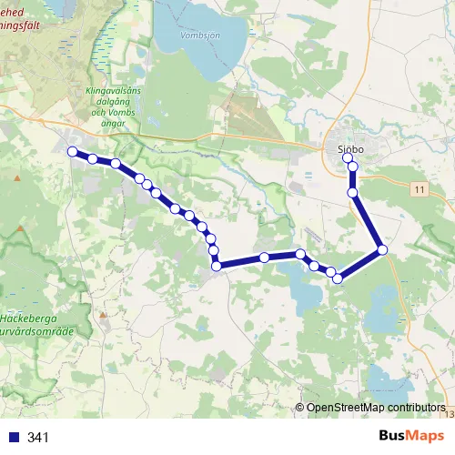 The first stop of the 341 bus route is Sjöbo busstation and the last stop is Veberöd centrum. 341 is operational during everyday.