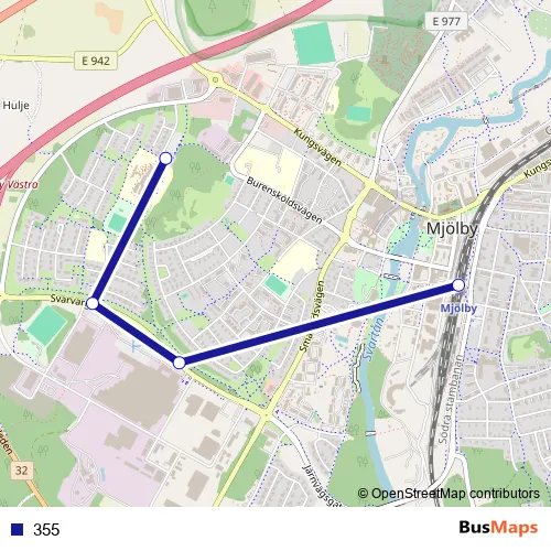 The first stop of the 355 bus route is Mjölby station and the last stop is Kungshögaskolan. 355 is operational during on weekdays.