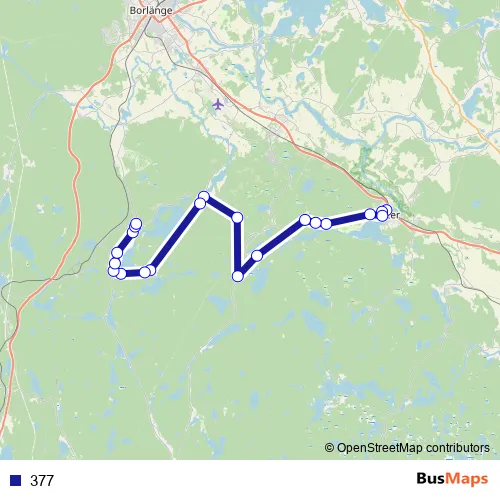 The first stop of the 377 bus route is Säter Lagmannen and the last stop is Skenshyttan. 377 is operational during on weekdays.