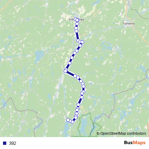 The first stop of the 392 bus route is Svenljunga busstation and the last stop is Kalv kyrkby. 392 is operational during on weekdays.