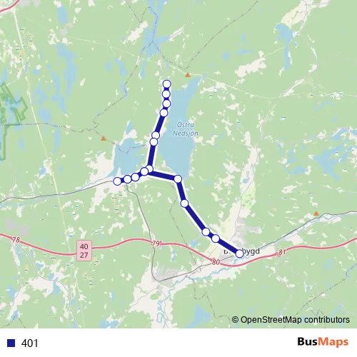 The first stop of the 401 bus route is Jordås and the last stop is Bollebygd station. 401 is operational during on weekdays.