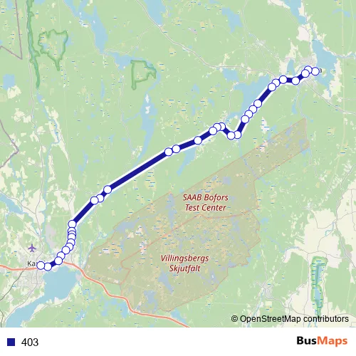 The first stop of the 403 bus route is Nora station and the last stop is Karlskoga busstation. 403 is operational during on weekdays.