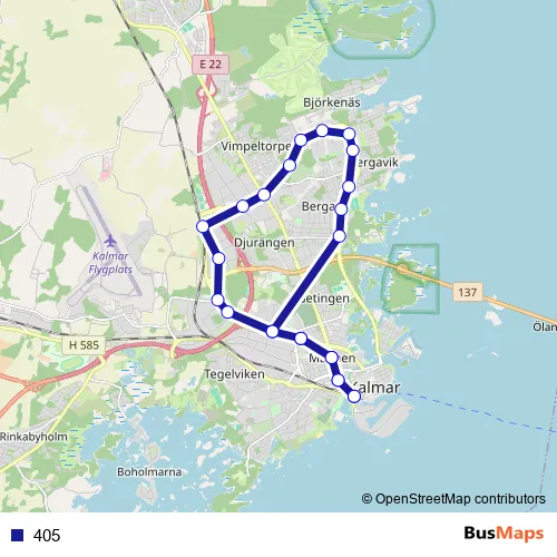See why over 2 million users trust and consider busmaps.com as the best public transport website. busmaps gives you Kalmar Buses suggested routes, real-time bus tracker, line route maps in Kalmar, and helps to find the closest 405 bus stops near you. No internet available? Download an offline PDF map and bus schedule for the 405 bus to take on your trip.