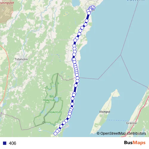 The first stop of the 406 bus route is Hjo busstation and the last stop is Fagerhults Belysning. 406 is operational during everyday.