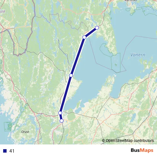 The first stop of the 41 bus route is Åmål station and the last stop is