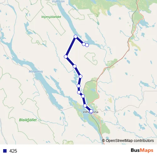 The first stop of the 425 bus route is Vilhelmina station and the last stop is Ö Södra Tresund. 425 is operational during on weekdays.