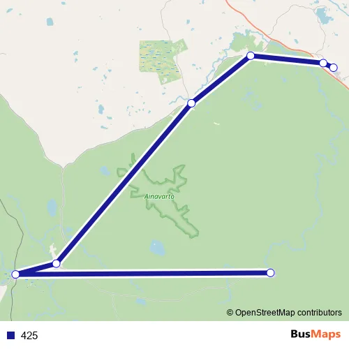 The first stop of the 425 bus route is Hakkas skola and the last stop is Sarvisvaara. 425 is operational during on weekdays.