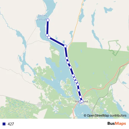 The first stop of the 427 bus route is Strömsund busstation and the last stop is Näxås vägskäl. 427 is operational during on weekdays.