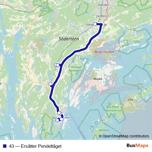 See why over 2 million users trust and consider busmaps.com as the best public transport website. busmaps gives you Handen Buses suggested routes, real-time bus tracker, line route maps in Handen, and helps to find the closest 43 bus stops near you. No internet available? Download an offline PDF map and bus schedule for the 43 bus to take on your trip.