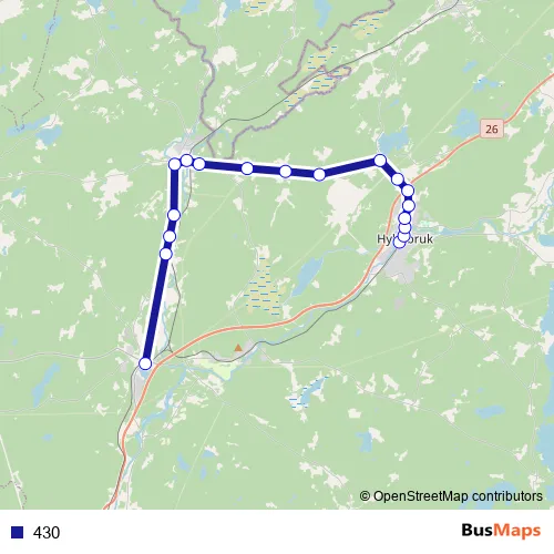 The first stop of the 430 bus route is Hyltebruk bussterminal and the last stop is Torup Station. 430 is operational during on weekdays.