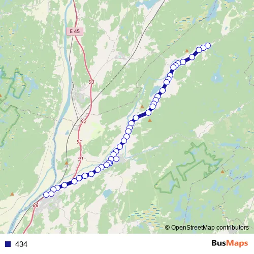 The first stop of the 434 bus route is Getås and the last stop is Älvängen station. 434 is operational during everyday.