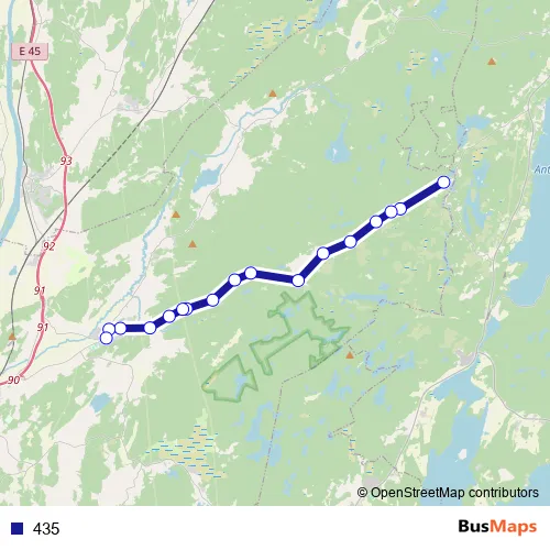 The first stop of the 435 bus route is Granvattnet and the last stop is Garnvindeskolan. 435 is operational during on weekdays.