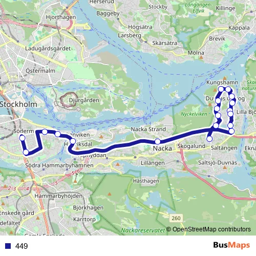 See why over 2 million users trust and consider busmaps.com as the best public transport website. busmaps gives you Nacka Buses suggested routes, real-time bus tracker, line route maps in Nacka, and helps to find the closest 449 bus stops near you. No internet available? Download an offline PDF map and bus schedule for the 449 bus to take on your trip.