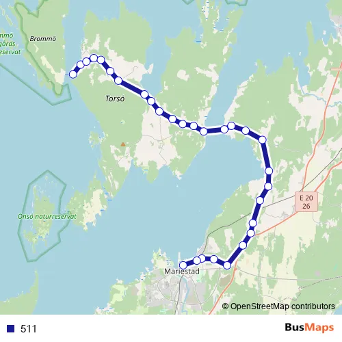 The first stop of the 511 bus route is Laxhall and the last stop is Mariestad station. 511 is operational during on weekdays.