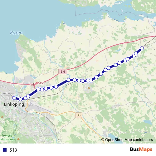 The first stop of the 513 bus route is Linköping Centralstation and the last stop is Lillkyrkavägen. 513 is operational during everyday.
