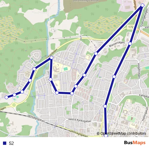 The first stop of the 52 bus route is Arvika busstation and the last stop is Vildrosgatan vändplan, Arvika. 52 is operational during everyday.