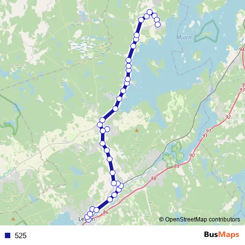 The first stop of the 525 bus route is Lerum station and the last stop is Sjövik busstation Lerum. 525 is operational during everyday.