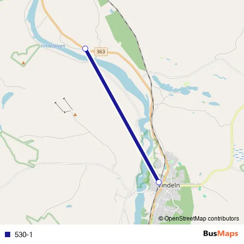 The first stop of the 530-1 bus route is Nedre Mesele and the last stop is Vindeln Resecentrum/Station. 530-1 is operational during everyday.