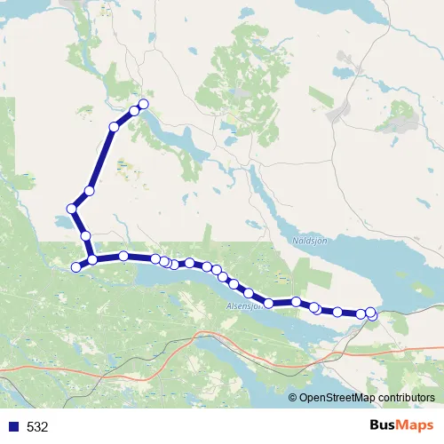 The first stop of the 532 bus route is Nälden Ica and the last stop is Kaxås. 532 is operational during everyday.