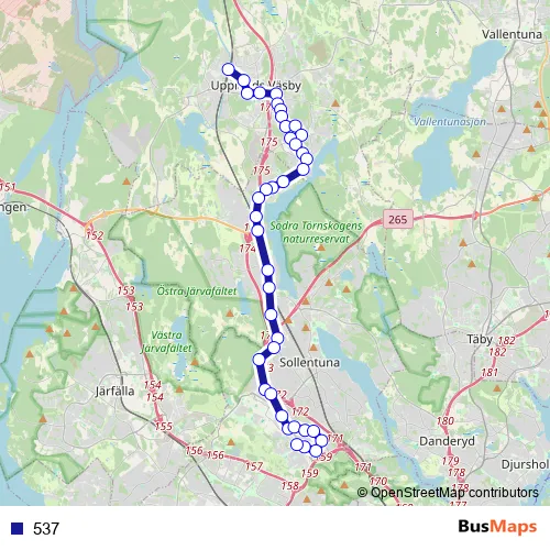The first stop of the 537 bus route is Upplands Väsby station and the last stop is Kista T-bana. 537 is operational during on weekdays.