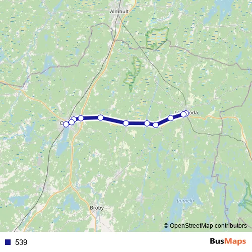 The first stop of the 539 bus route is Lönsboda busstation and the last stop is Osby station. 539 is operational during everyday.