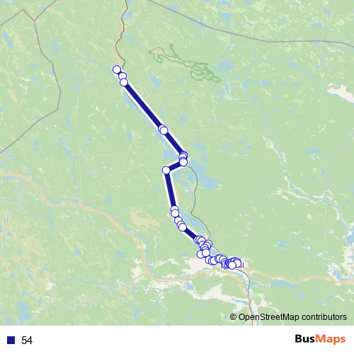 The first stop of the 54 bus route is Ramsjö affären and the last stop is Ljusdal station. 54 is operational during everyday.