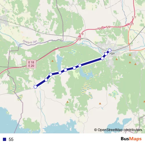 The first stop of the 55 bus route is Götlunda Fårtallen and the last stop is Arboga station. 55 is operational during on weekdays.