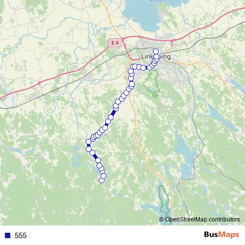 The first stop of the 555 bus route is Haraldsbo and the last stop is Linköping Centralstation. 555 is operational during everyday.