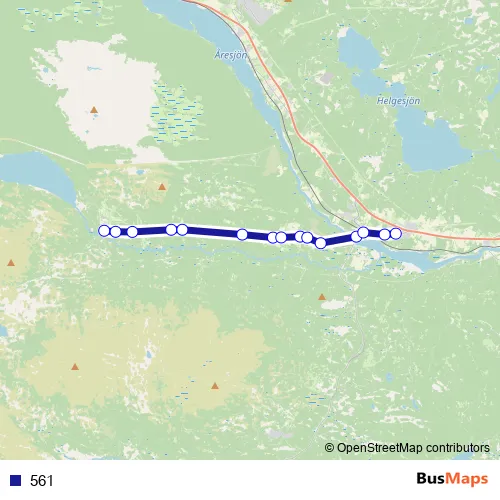 The first stop of the 561 bus route is Edsåsdalen vändzon and the last stop is Undersåker Stamgärde skola. 561 is operational during on weekdays.