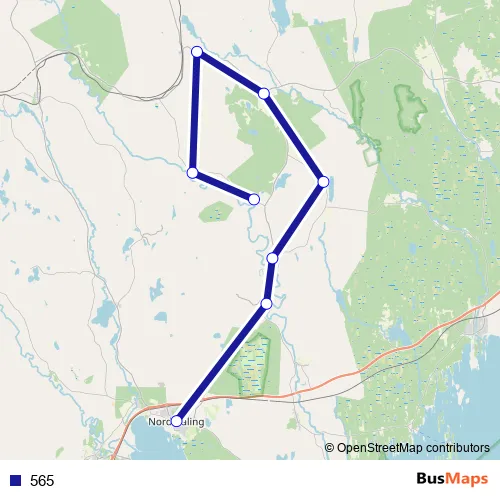 The first stop of the 565 bus route is Nordmaling Torget and the last stop is Torrböle. 565 is operational during everyday.