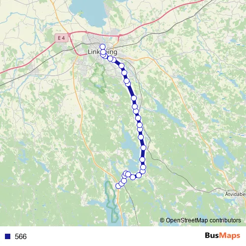The first stop of the 566 bus route is Brokind vägkors and the last stop is Linköping Centralstation. 566 is operational during everyday.