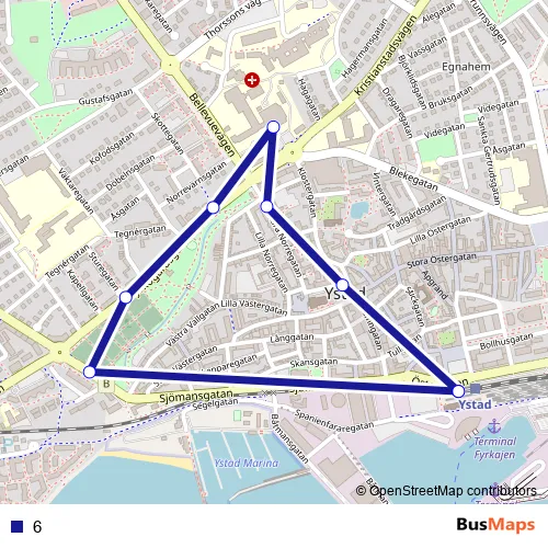See why over 2 million users trust and consider busmaps.com as the best public transport website. busmaps gives you Ystad Buses suggested routes, real-time bus tracker, line route maps in Ystad, and helps to find the closest 6 bus stops near you. No internet available? Download an offline PDF map and bus schedule for the 6 bus to take on your trip.