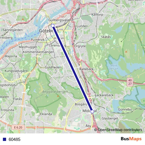 The first stop of the 60485 bus route is Göteborg Nils Ericsonterminal and the last stop is Mölndal station. 60485 is operational during everyday.