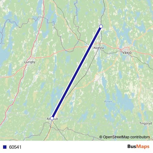 The first stop of the 60541 bus route is Moheda station and the last stop is Älmhult station. 60541 is operational during on weekends.