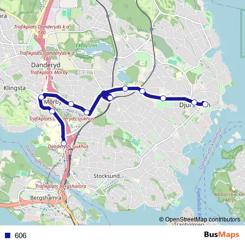 The first stop of the 606 bus route is Djursholms torg and the last stop is Danderyds sjukhus. 606 is operational during everyday.