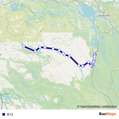 The first stop of the 613 bus route is Åsarna busstation and the last stop is Ljungdalen. 613 is operational during everyday.